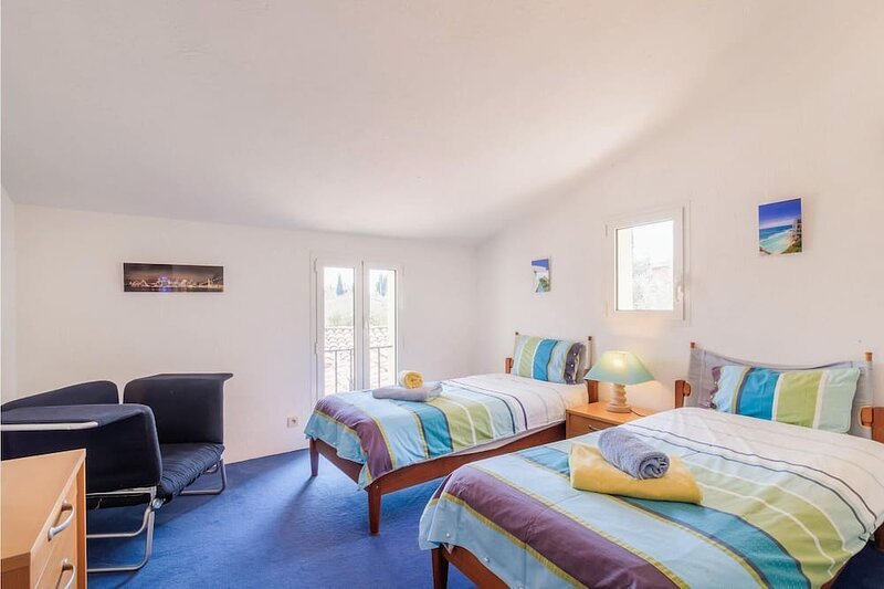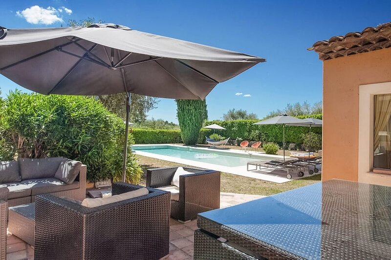 This spacious five bedroom villa benefits from a tranquil location, just five minutes from the medieval village of Saint-Cézaire. It has been tastefully decorated with an elegant décor and comfortable furnishings. The living room and dining room are both cosy and welcoming, and the fully-equipped kitchen offers plenty of space for guests wishing cook with the delicious local produce. Outside, there is plenty of space to both relax and have fun, with a refreshing swimming pool, lawn area, several terraces, a giant garden chess set and children's play area at your disposal!. - Free parking nearby