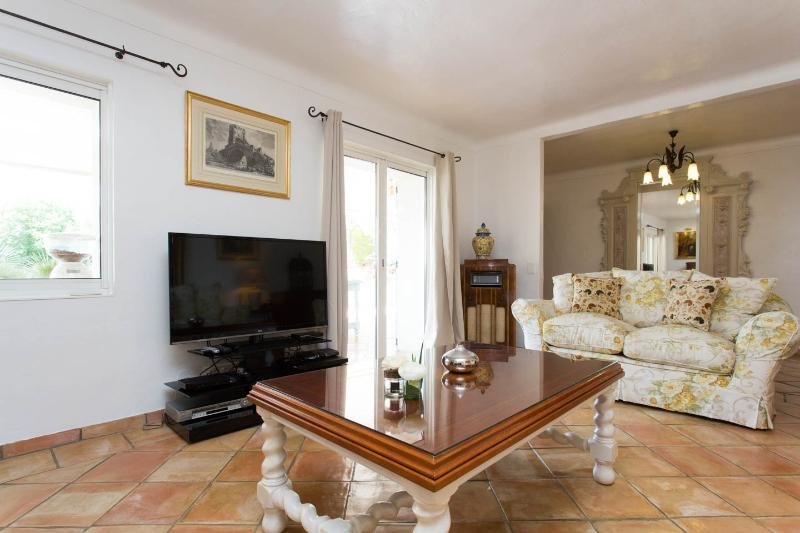 This villa is located in a secluded setting, yet only a minute's walk to the cafés, baker, butcher and Saturday market. It has a fully-equipped kitchen, spacious lounge area opening onto a covered dining terrace, dining room, and 3 comfortable bedrooms, each with their private bathroom with shower (master bedroom has a full bath). Villa sleeps 6 comfortably. This villa is available in June, July and August. End of stay clean,100€ and 1000€ Damage deposit to be paid to key holder upon arrival. Bath towels and linens are included. Pool towels not included.