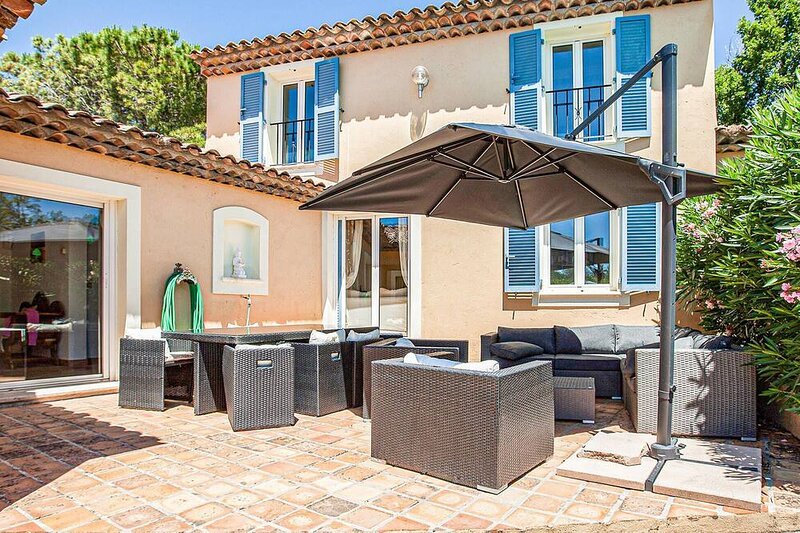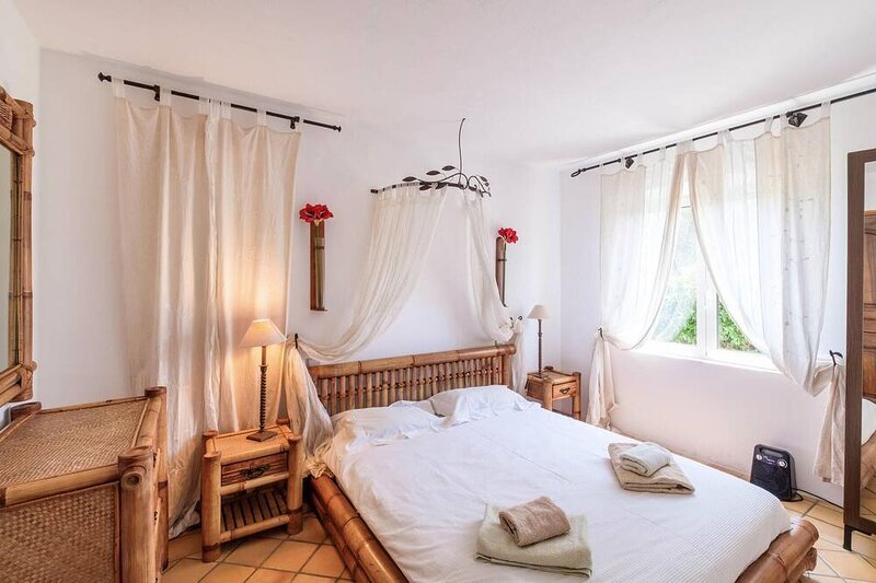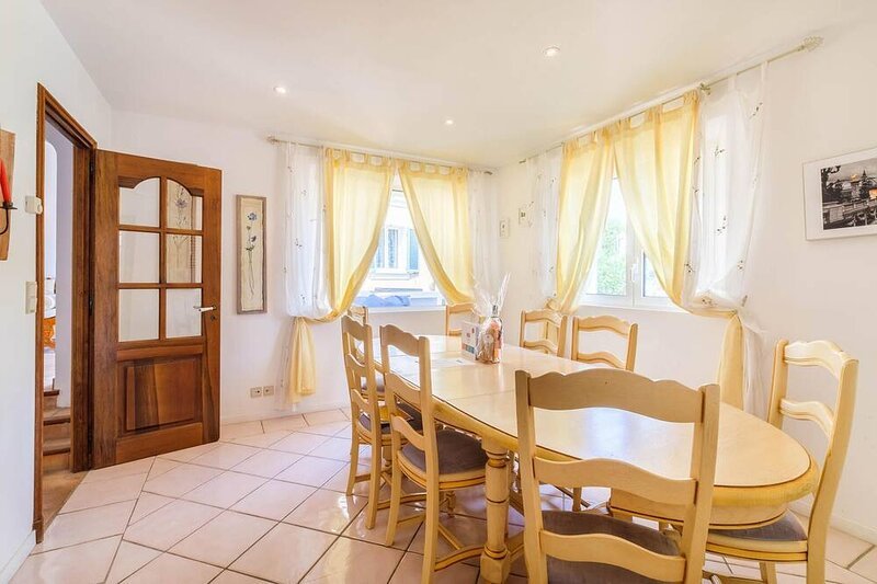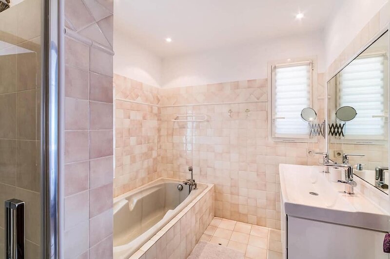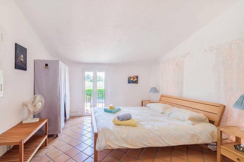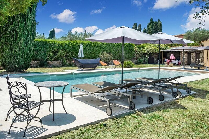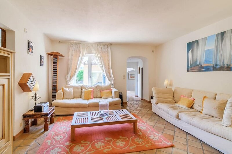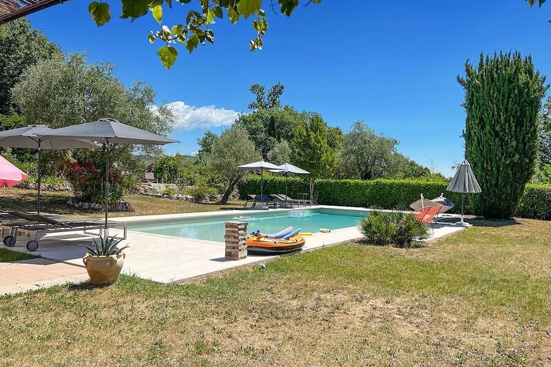 This spacious five bedroom villa benefits from a tranquil location, just five minutes from the medieval village of Saint-Cézaire. It has been tastefully decorated with an elegant décor and comfortable furnishings. The living room and dining room are both cosy and welcoming, and the fully-equipped kitchen offers plenty of space for guests wishing cook with the delicious local produce. Outside, there is plenty of space to both relax and have fun, with a refreshing swimming pool, lawn area, several terraces, a giant garden chess set and children's play area at your disposal!. - Free parking nearby