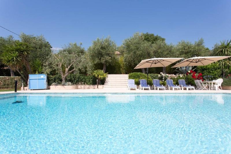 This lovely well-appointed villa is located at the top of the village of Saint Cezaire, just behind a 12th century chapel, surrounded by a private enclosed garden with olive trees and a covered swimming pool.