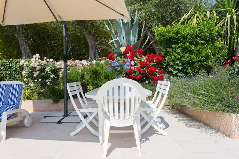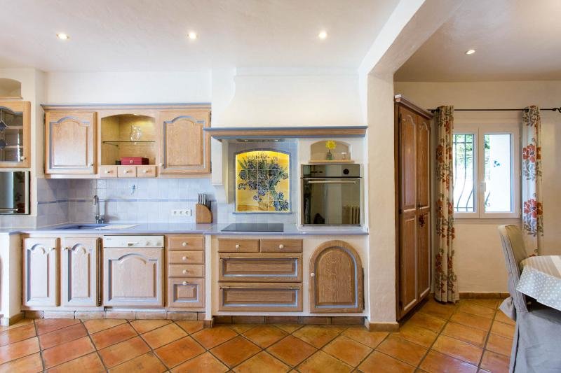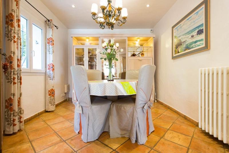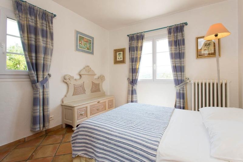 This villa is located in a secluded setting, yet only a minute's walk to the cafés, baker, butcher and Saturday market. It has a fully-equipped kitchen, spacious lounge area opening onto a covered dining terrace, dining room, and 3 comfortable bedrooms, each with their private bathroom with shower (master bedroom has a full bath). Villa sleeps 6 comfortably. This villa is available in June, July and August. End of stay clean,100€ and 1000€ Damage deposit to be paid to key holder upon arrival. Bath towels and linens are included. Pool towels not included.