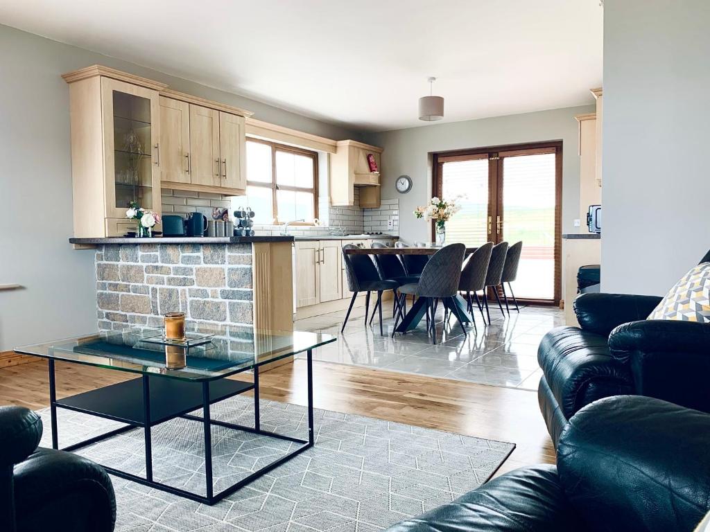 The house is on the 'Wild Atlantic Way' route, there's Dooey Beach (5 minute drive from house) and Portnoo Beach (15/20 minute drive from house). There is also a Golf Course in Portnoo. There are two bars, a petrol station, a corner shop and a cafe within walking distance of the house (Approx 1.2km) with Elliot's pub providing great Diddly-Dee traditional folk music every Friday night. Letterkenny is only a 30/40 minute drive where there are a number of retail parks with countless shops and there is also a variety of kids activities to be found here.
