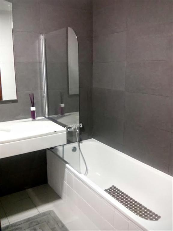 Spacious and bright three bedroom apartment, two bathrooms, a living room, fully equipped kitchen, laundry room and a large balcony with sea view. Recently refurbished and has wi-fi throughout the apartment. It has a playground in the building and bakery next door.